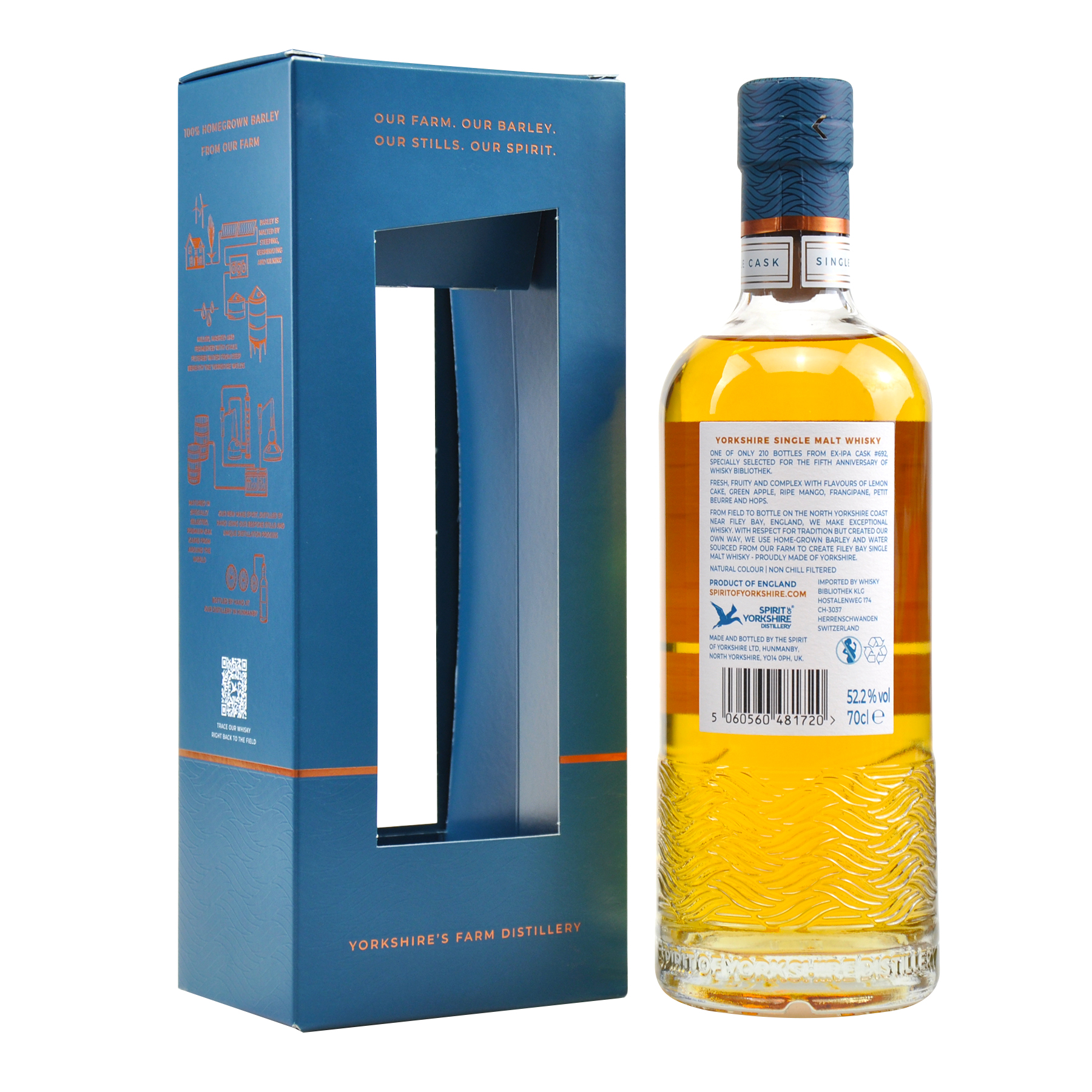Land England Inhalt 10cl Region Yorkshire VOL % 52.2 Jahrgang 2018 12.2018 - 04.2025 Alter 6 Destillerie Spirit of Yorkshire Distillery Abfüller OB für Whisky Bibliothek Fass India Pale Ale (IPA) Fass Nr. 692 Total Flaschen 210